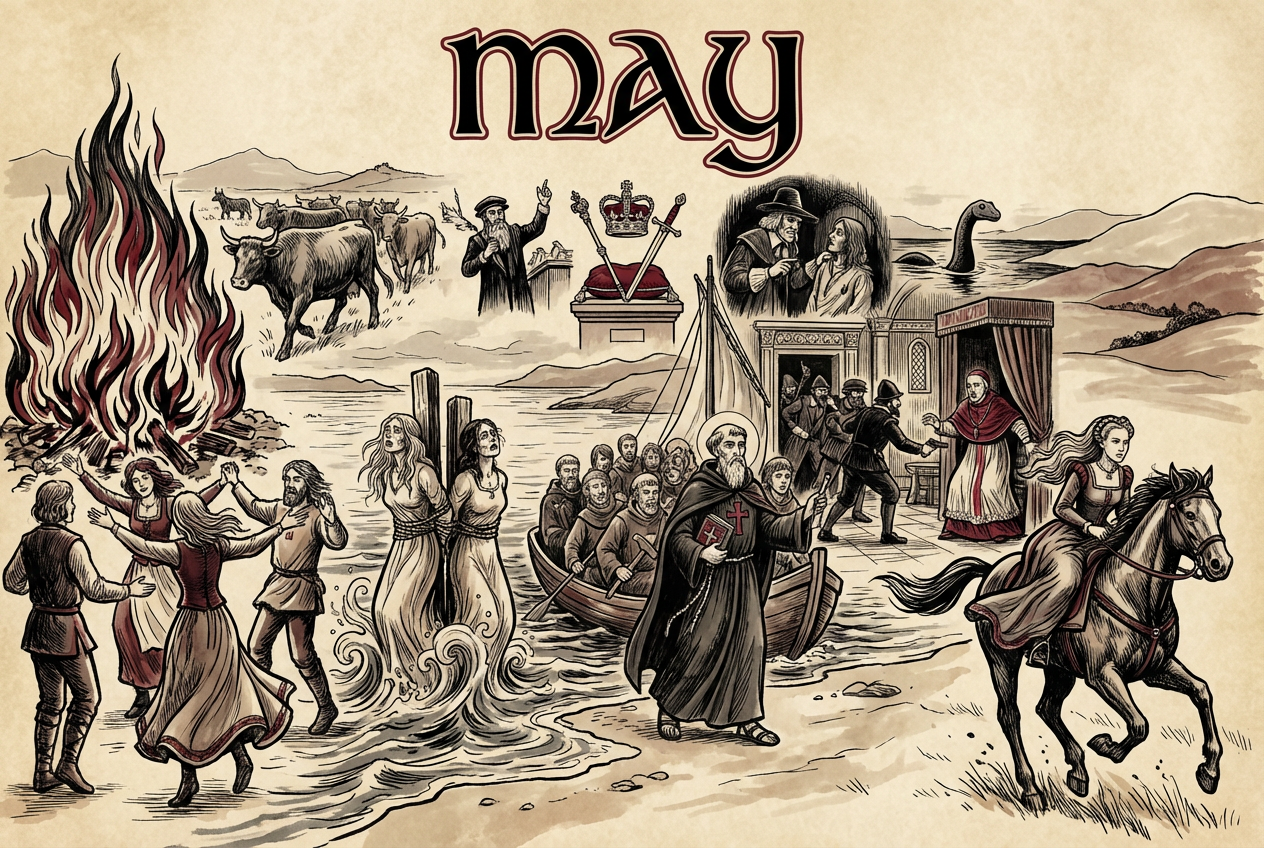 1 May: Bealltainn, the Gaelic festival marking the start of summer and the return of Brìde. Cattle are driven to summer pastures, and communities light bonfires to protect livestock and ensure fertility. Consequently, well-dressing and fire rituals connect the living world with older seasonal powers.